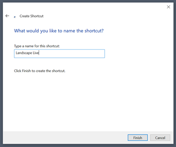 4. Name your Shortcut i.e. "Landscape Live" and click [Finish]: